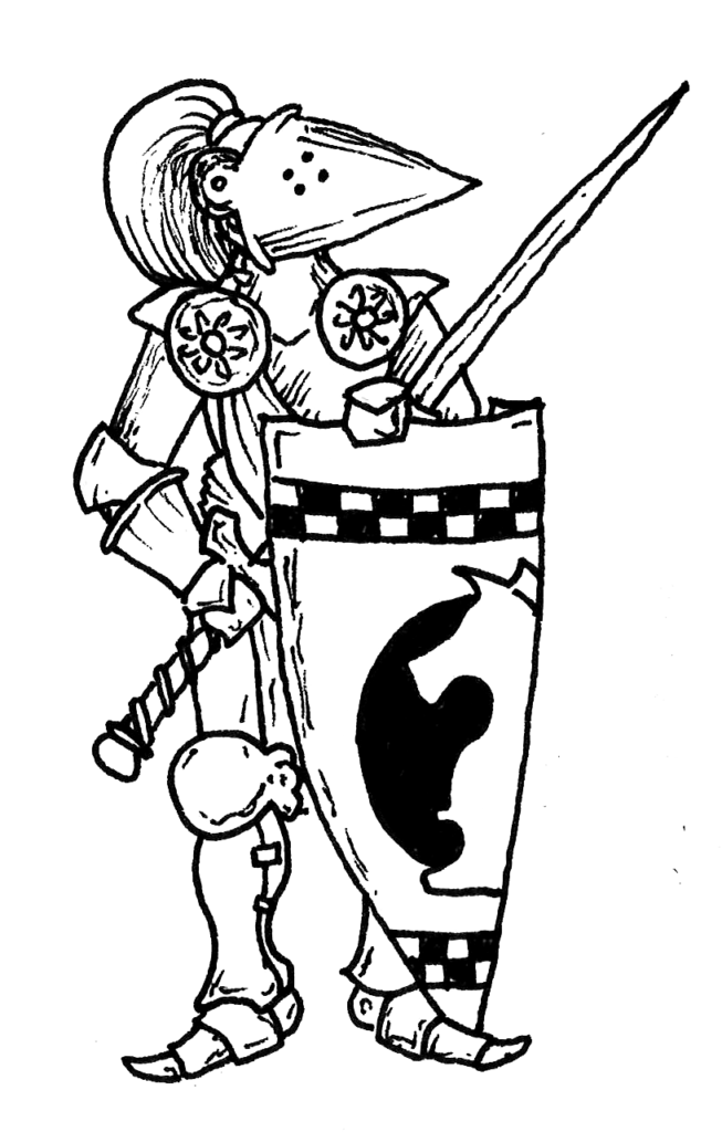 “Greetings fair traveller. I am sir Gebbon the white, questing knight, at your service. Have you, by any chance, seen any terrible adversaries upon your road?”