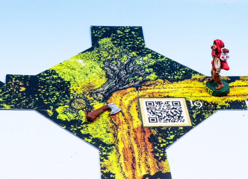 A large tree has been felled across path. To one side is an axe which you may take. The axe will increase your Strength by 1.
