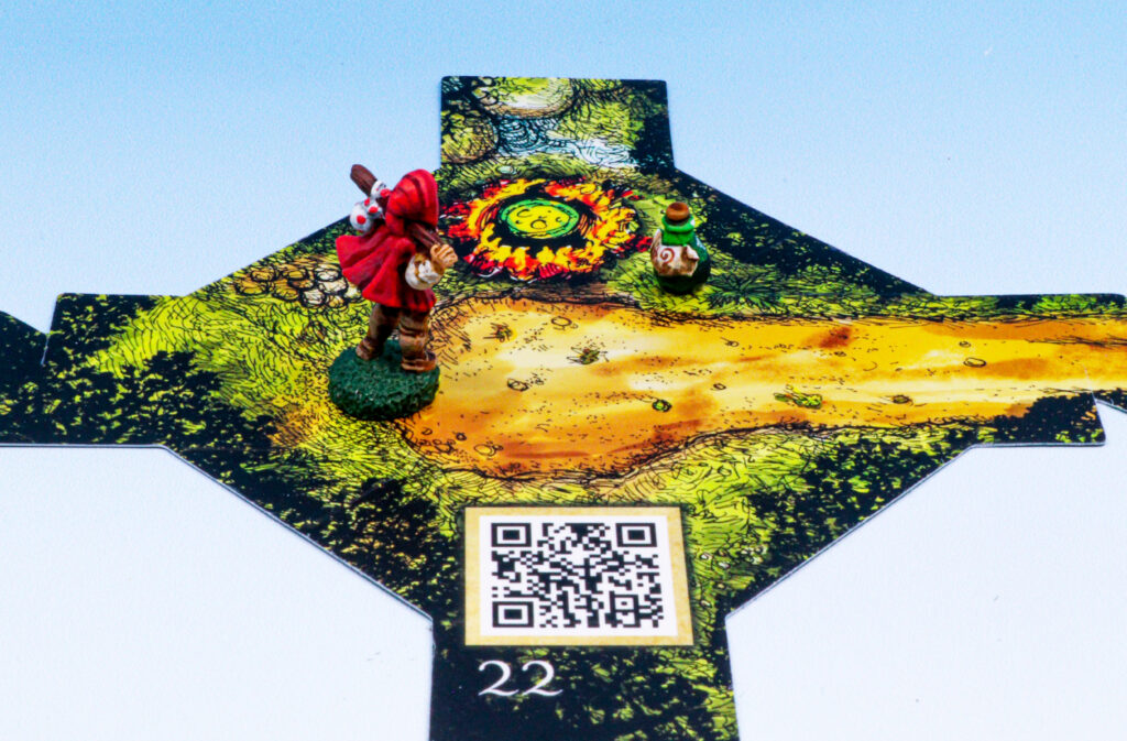 If you have already met the witch and given her what she wanted place her miniature here. She recognises you and grants you a wish. She will increase any one of your stats by 1, make a note for future tests.