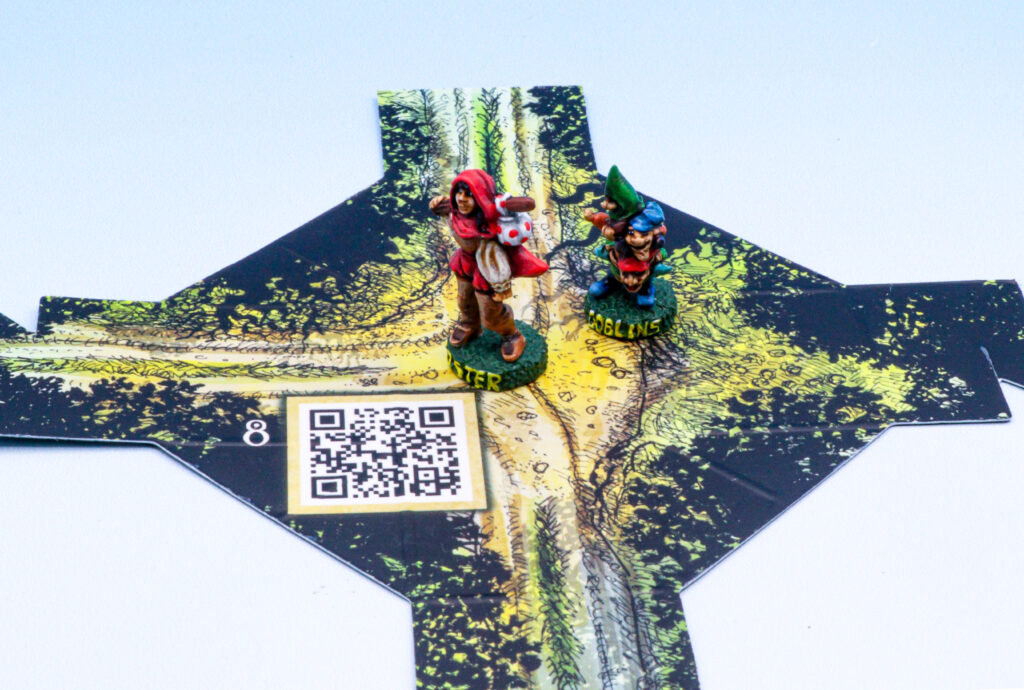 Like a flash the goblins are upon you, tearing at your knapsack. They aren’t strong, but they’re determined and there are lots of them! Make an Opposed Test of Courage against the goblins (Courage 4). If you are unsuccessful they steal one item at random from your knapsack, remove it. If you are successful you manage to drive them away this time. Leave their miniature on the tile. They will attack again any time you pass through this tile. If you have no items for them to steal instead reduce your Endurance by 1 if you are unsuccessful.
