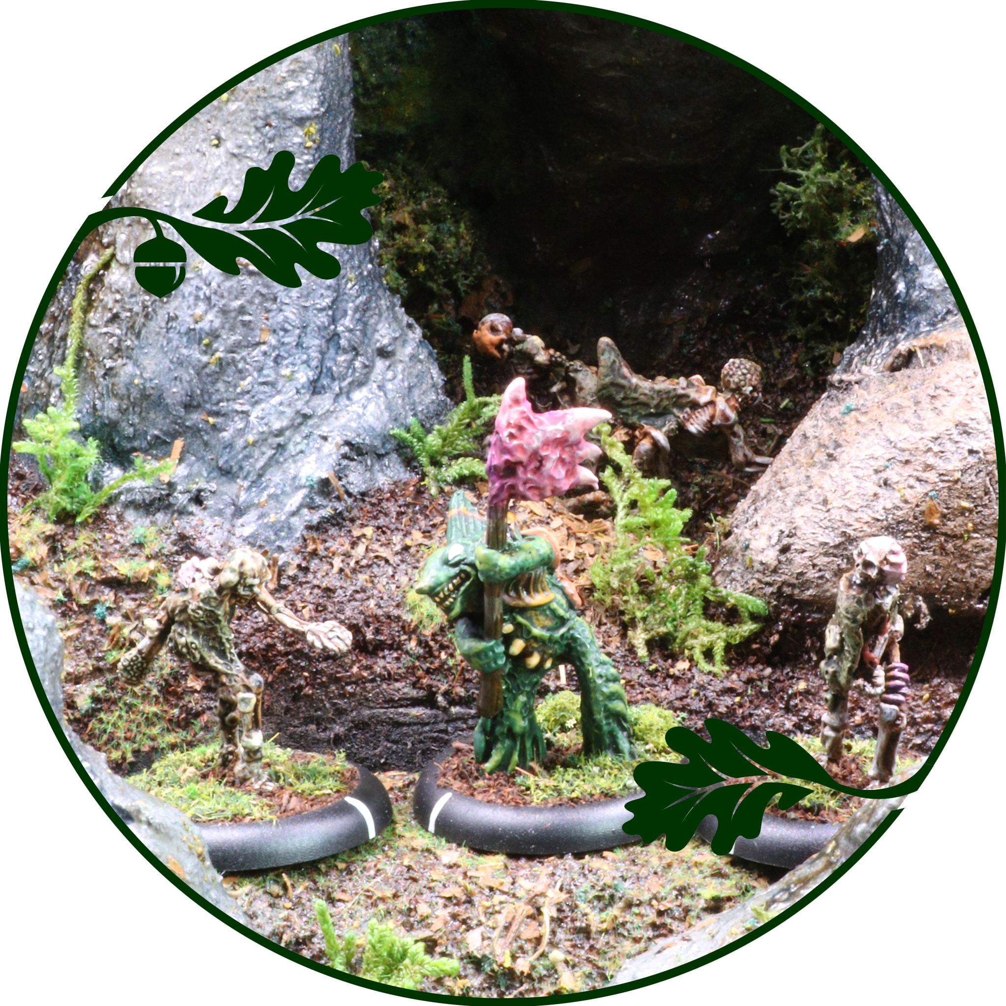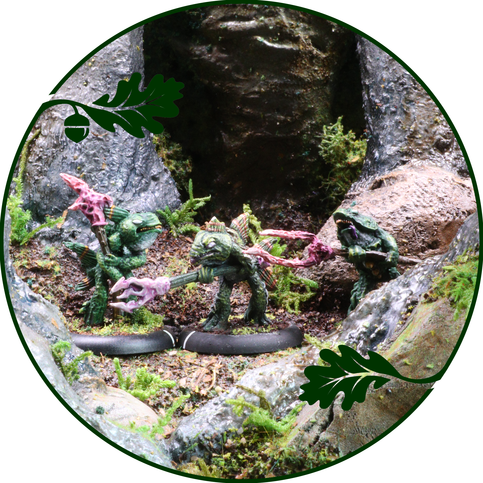 Bucca raiding parties attack swiftly, dragging victims off for sacrifice to their dark gods. They must move fast for their time out of the water is limited. Ten pewter miniatures supplied with 30mm round, lipped bases.