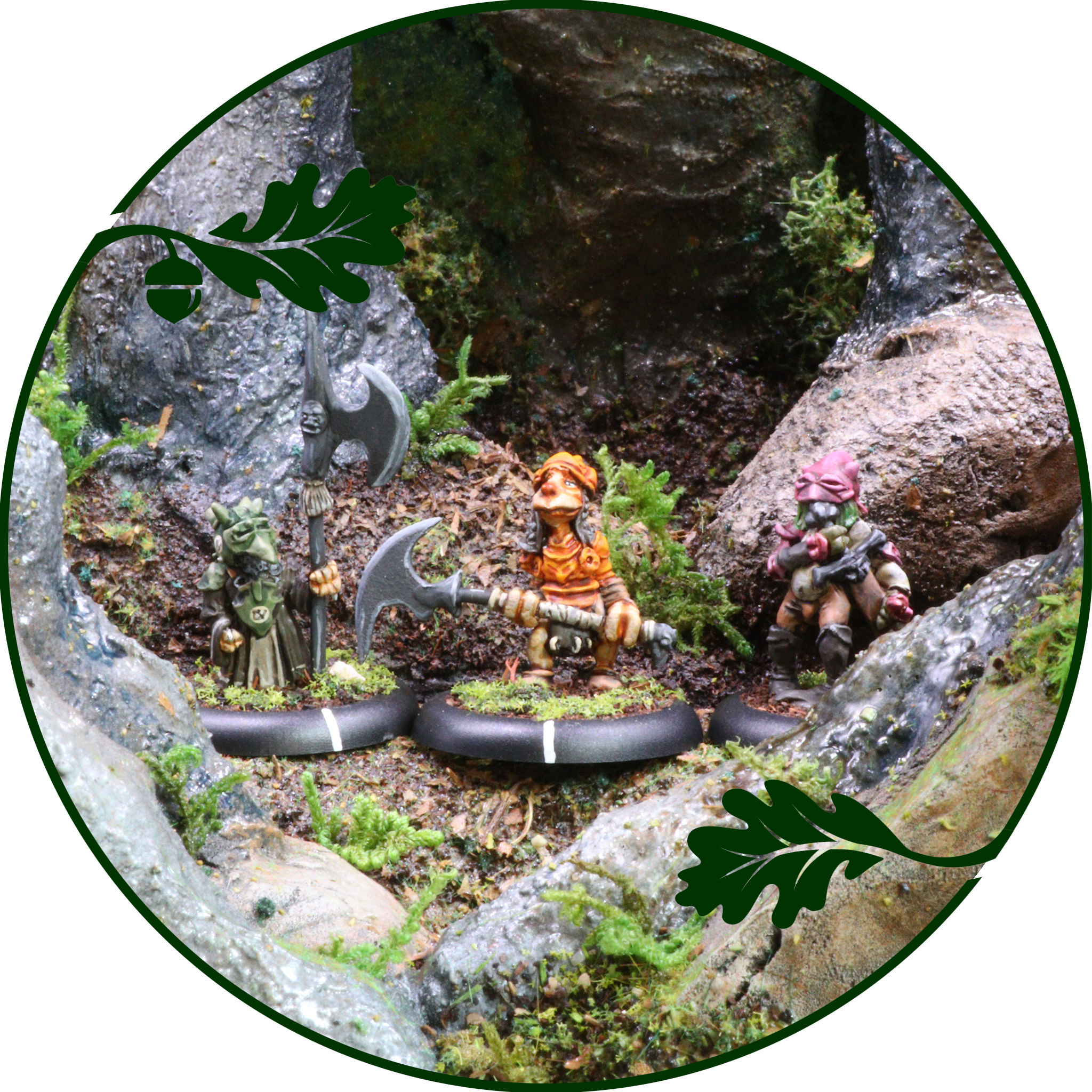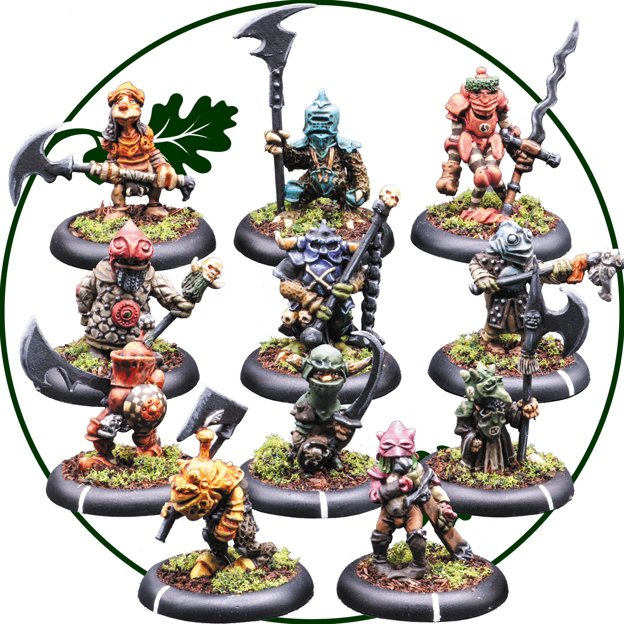 Never was there a more joyful bunch than a gathering of goblins off to war! Eleven pewter miniatures supplied with 30mm round, lipped bases.
