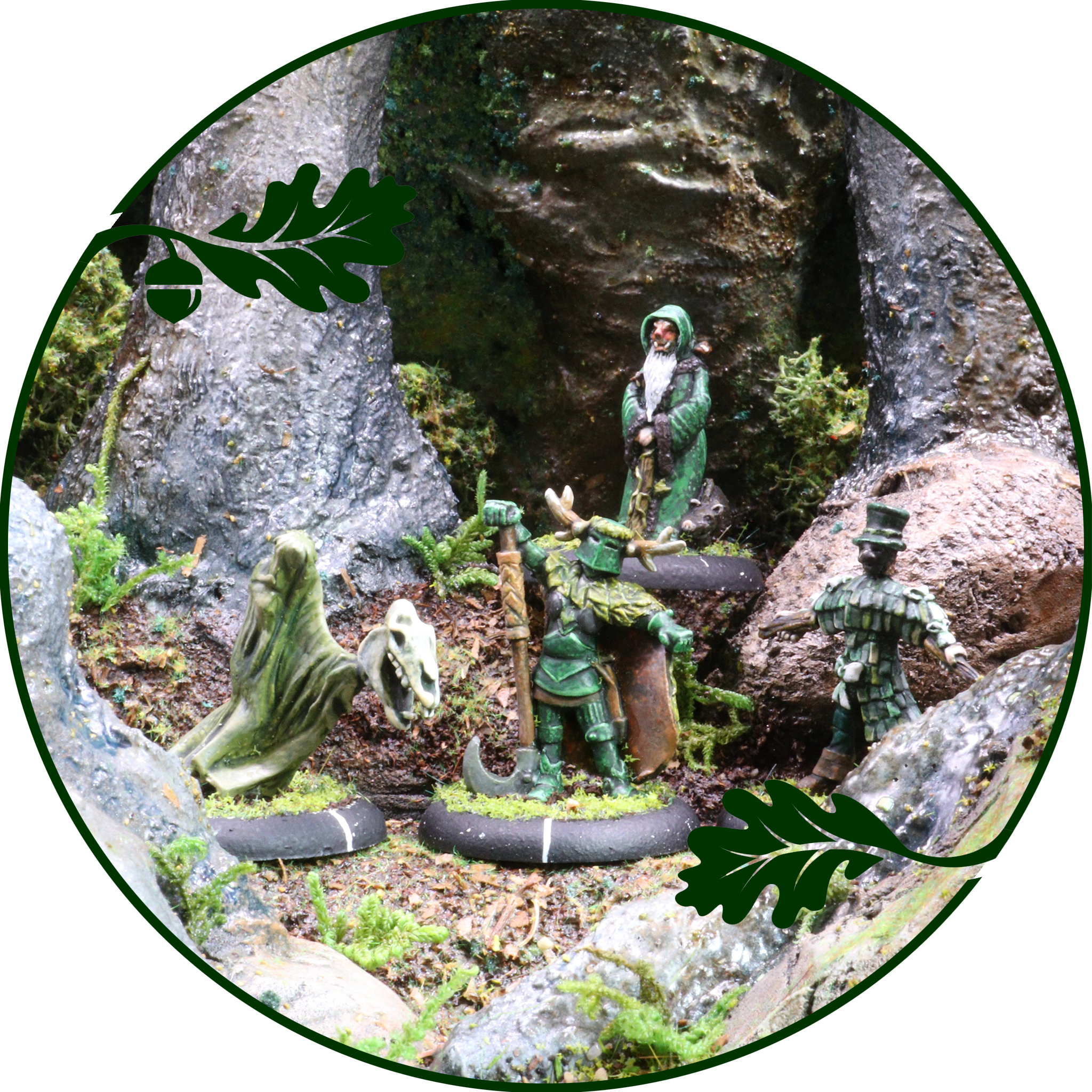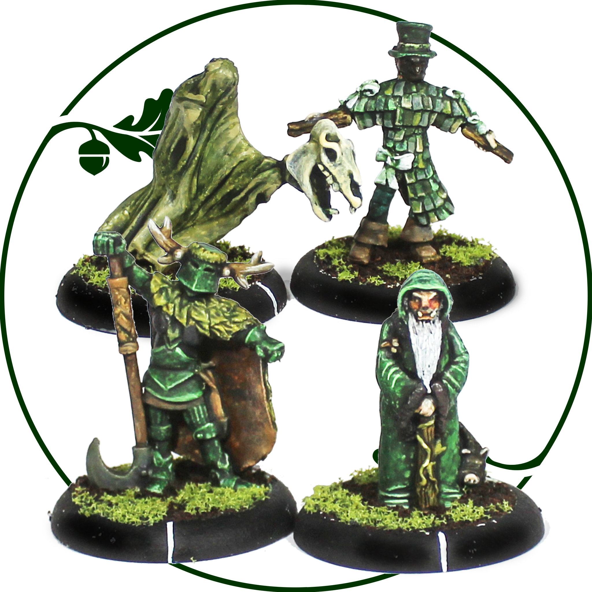 Herne the Hunter, lord of the winter, and the Green Knight, lord of the spring, preside over the Dark Half of the cycle. The Mummers’ festivities herald the spirit of the Light Half of the cycle. Four pewter miniatures supplied with 30mm round, lipped bases.