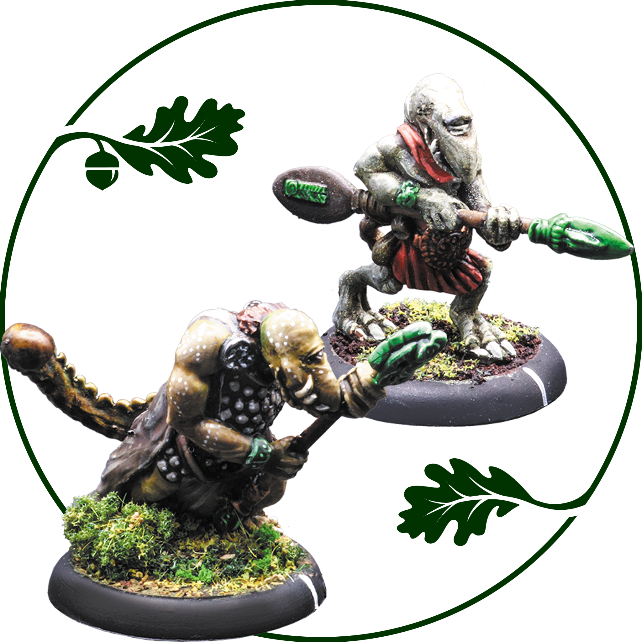 Losbastun are the warrior caste of the myeri. The hoeroa is their standard utility weapon; part spear, part club, part axe. Two pewter miniatures supplied with 30mm round, lipped bases.