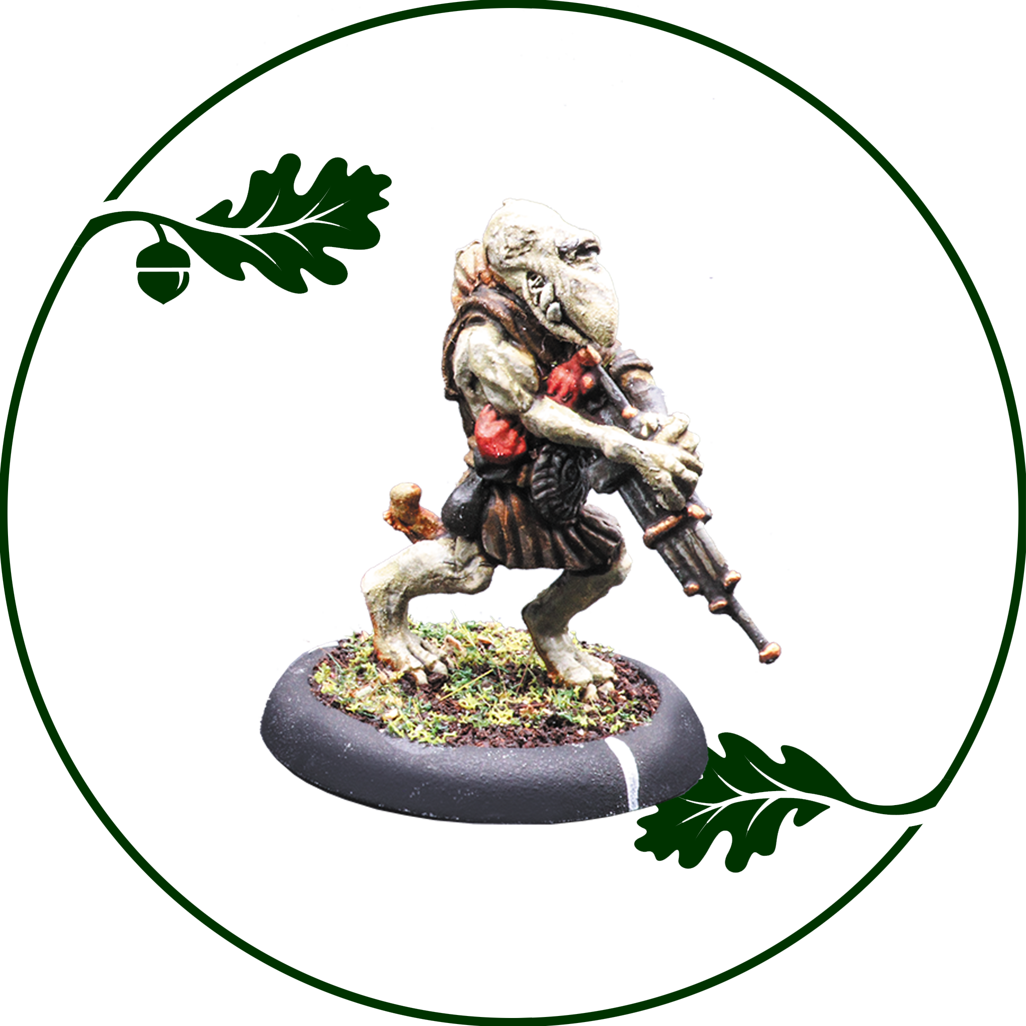 The war poets of the myeri accompany the losbastun with the mournful wail of the pipes. One pewter miniature supplied with 30mm round, lipped base.